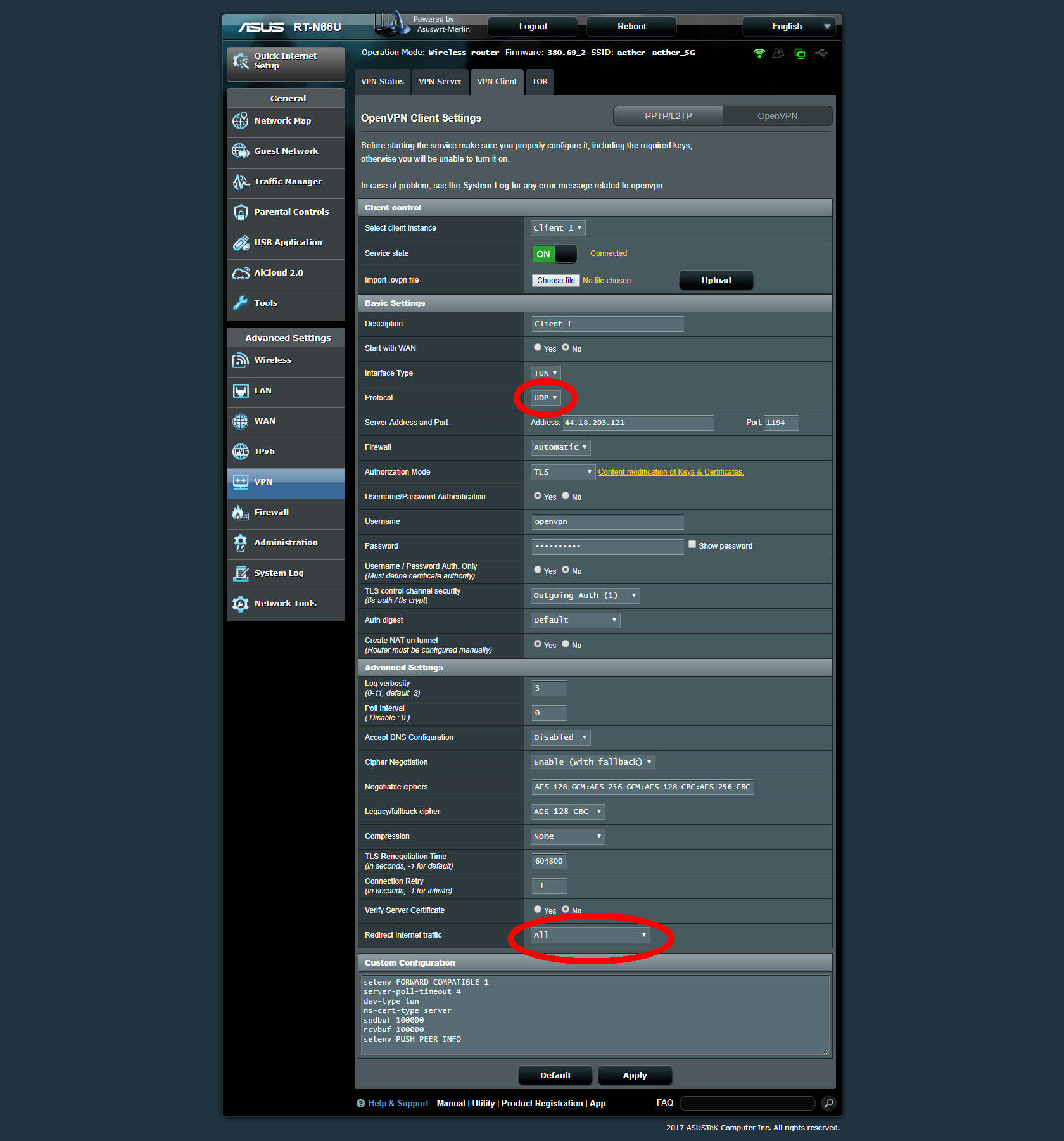 - Download the client.ovpn file from your OpenVPN server and upload it to the router
